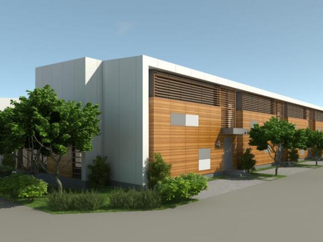 На первом этаже предусмотрена дневная зона с мягким уголком, столовая и кухня. На этом уровне расположены еще кладовая, прихожая и санитарный узел. Со стороны двора оформлена крытая веранда (двухсторонне ориентированные дома имеют „переднюю“ и „заднюю“ веранды). На втором этаже расположены две, а в угловых домах три спальни, две ванные, коридор и балконы.