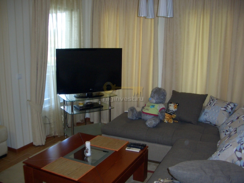 Квартира находится на 1-ом этаже, площадью 104 кв.м. Состоится из 2 пальни, 2 сан.узела, гостиной, столовой и кухни в одном. Квартира полностью мебилированная и оборудованная-кондиционеами, ТВ., интернетом, стиральной машиной, духовкой, стеклокерамической варочной поверхностей, холодильником, всей необходимой посудой. На террасе расположен стол со стульями.